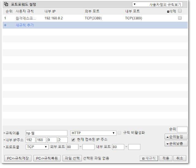 잘모르면 밑에 포트포워드 사용자정의에서 http를 지정해주면 된다.