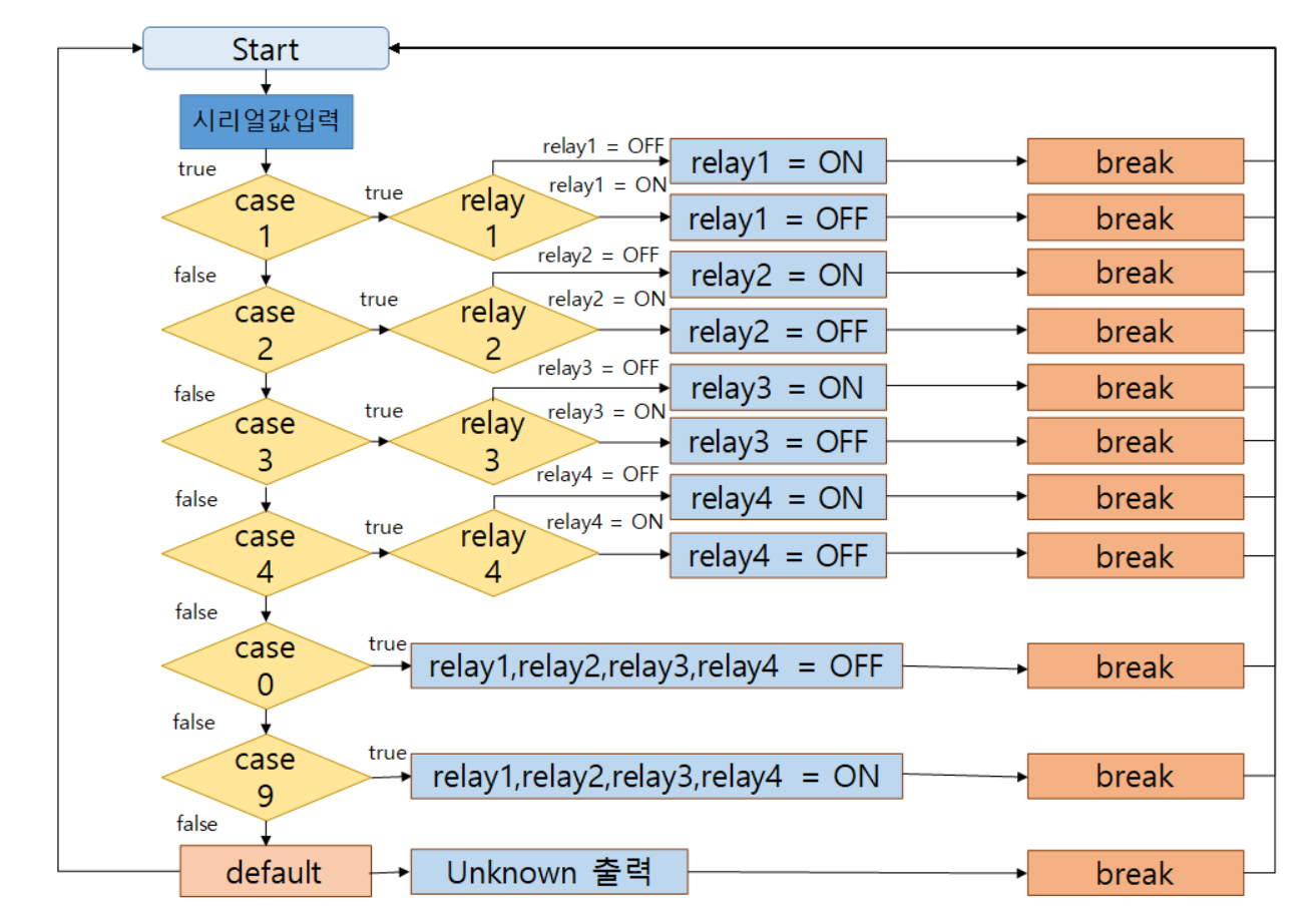 .아두이노에 시리얼 값을 입력받아 멀티탭을 ON/OFF 시킨다.