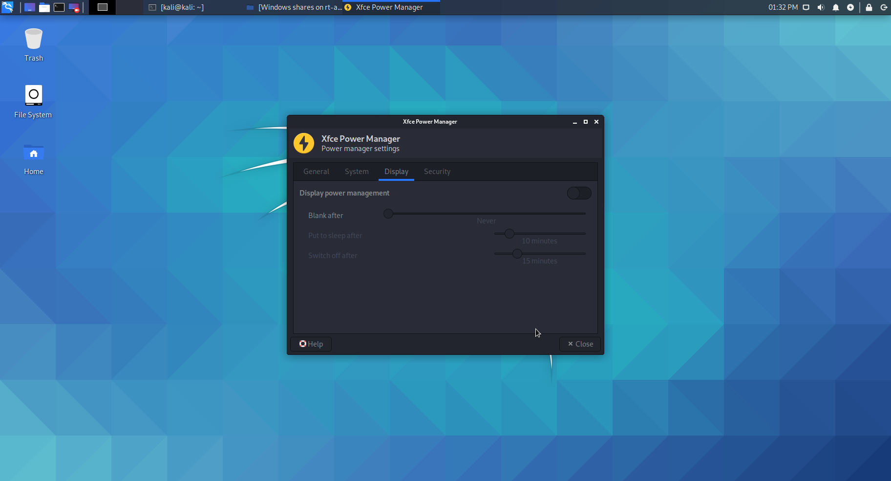 Xfce Power Manager에서 display에 들어가서 화면꺼짐설정을 한다.