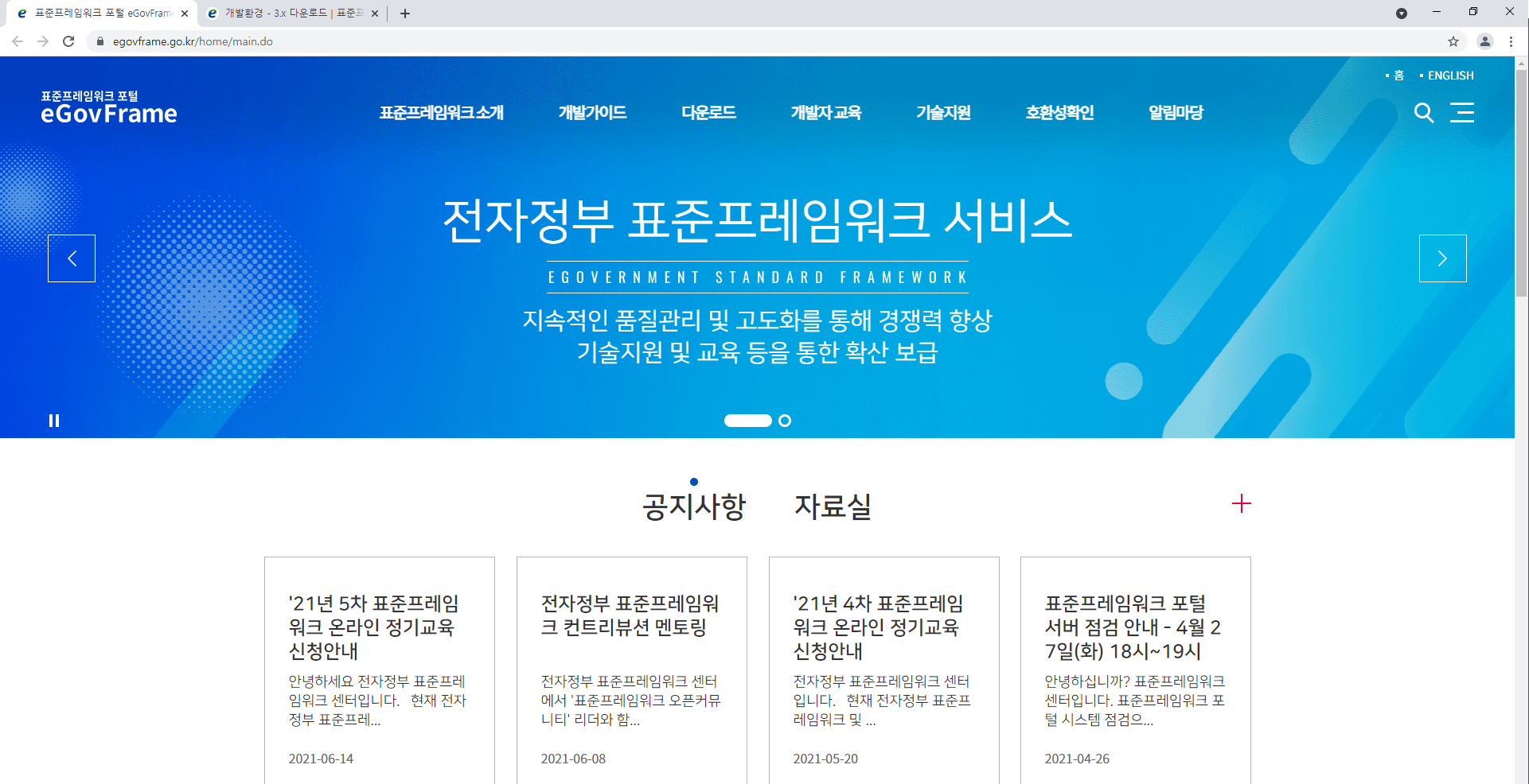 1. 전자정부프레임워크 홈페이지(https://www.egovframe.go.kr)에서 개발환경 다운로드