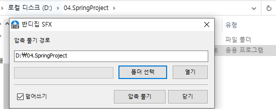 다운로드 받은 파일을 설치할 폴더로 옮김 (ex. D://04.SpringProject)