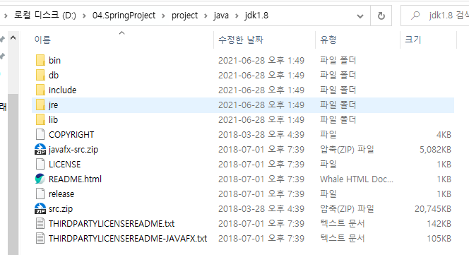 java 디렉터리에 사용할 JDK를 다운로드(JDK1.8 사용)
