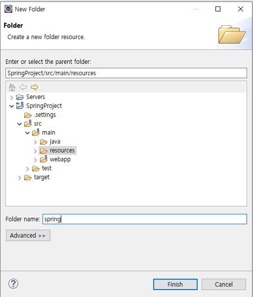 스프링에 이용할 설정파일들을 resource에 일괄적으로 저장함