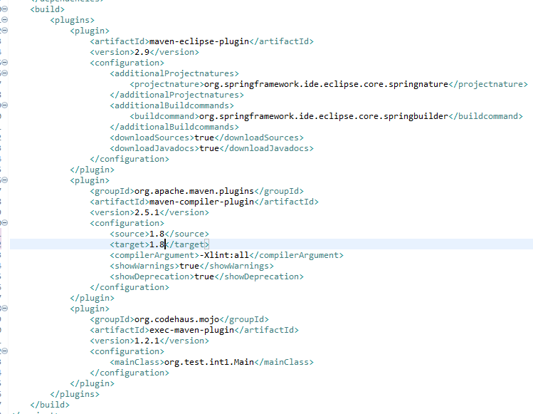 | <plugin> <groupId>org.apache.maven.plugins</groupId> <artifactId>maven-compiler-plugin</artifactId> <version>2.5.1</version> <configuration> <source>1.8</source> <target>1.8</target> <compilerArgument>-Xlint:all</compilerArgument> <showWarnings>true</showWarnings> <showDeprecation>true</showDeprecation> </configuration> </plugin> |