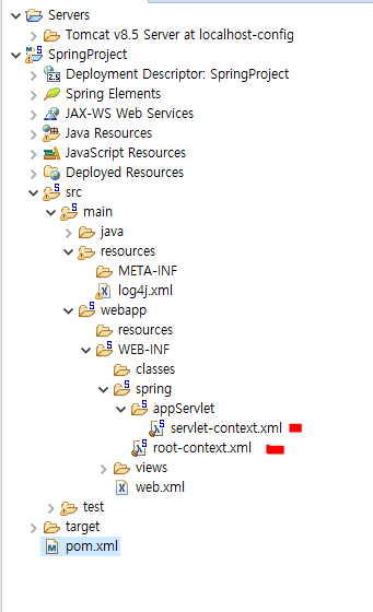 servlet-context.xml, root-context.xml 를 각각 해당 디렉터리로 이동