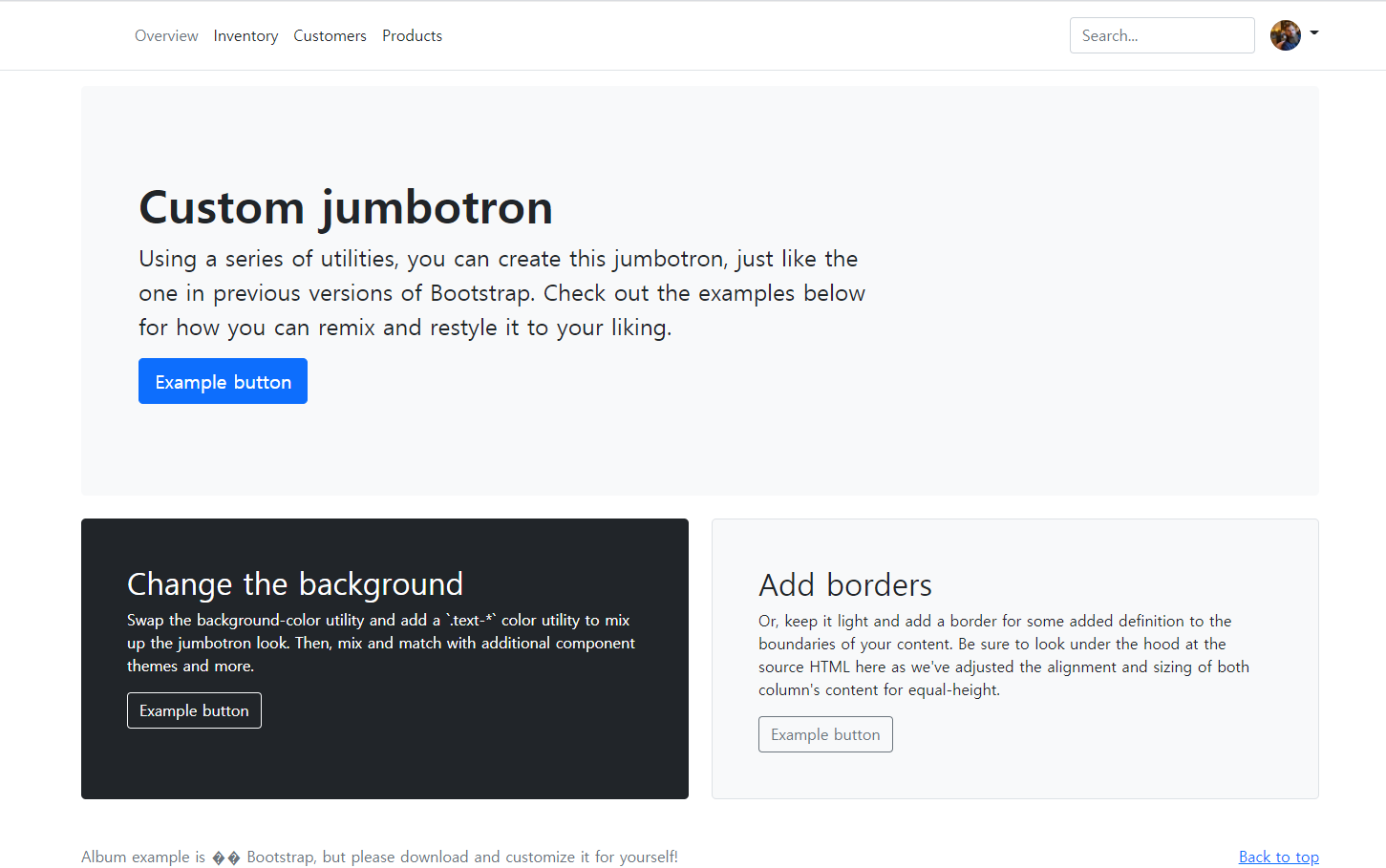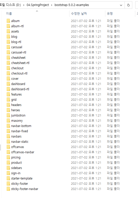 부트스트랩 홈페이지 (https://getbootstrap.com/)에서 Download Example 다운로드