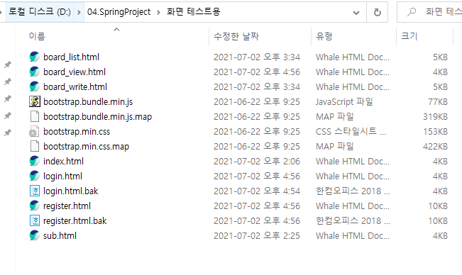 디자인에서 필요에 맞게 main. sub, board_list, board_write, board_view, login, register을 생성
