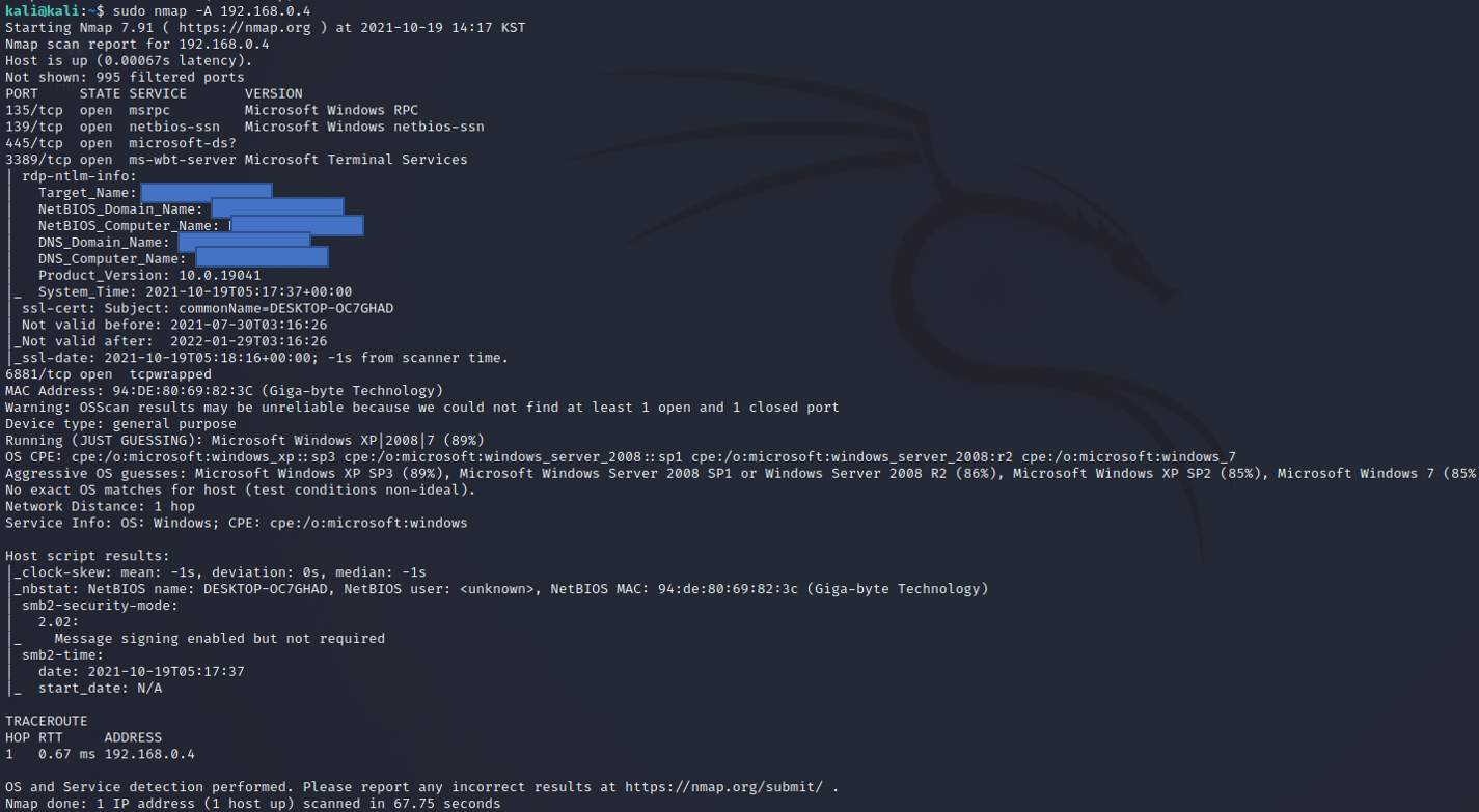 옵션 O를 사용해서 운영체제 정보도 같이 출력 되었다.
