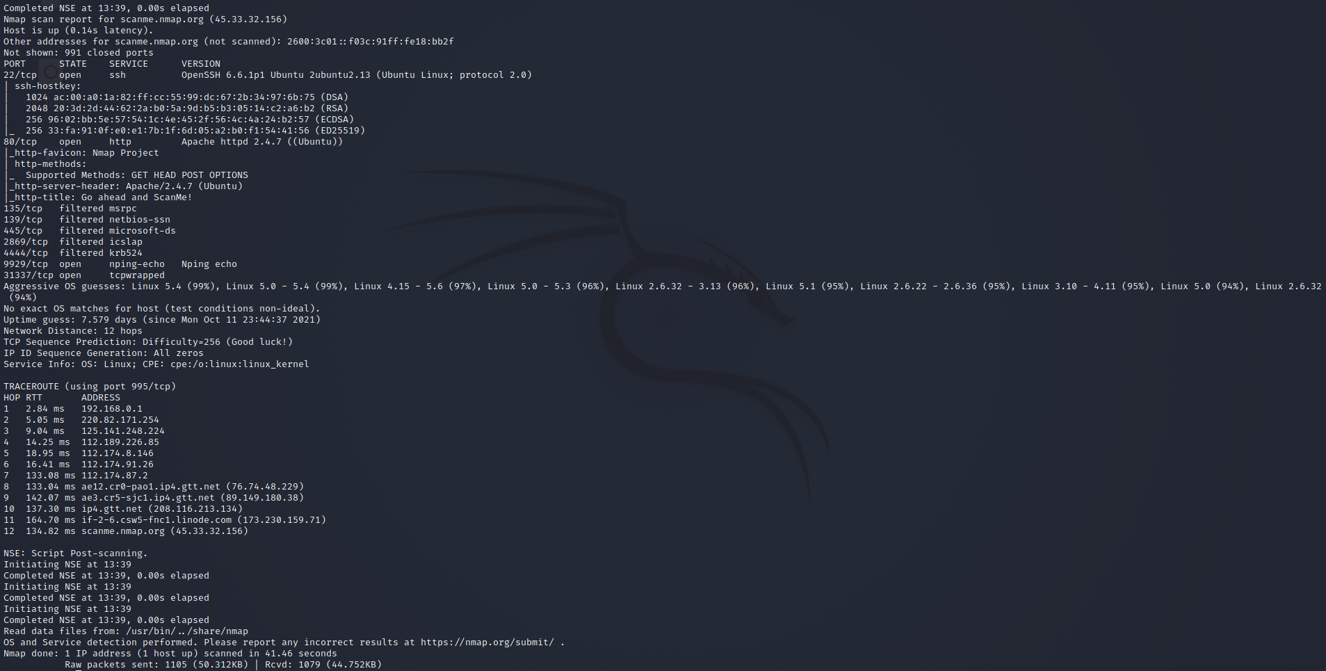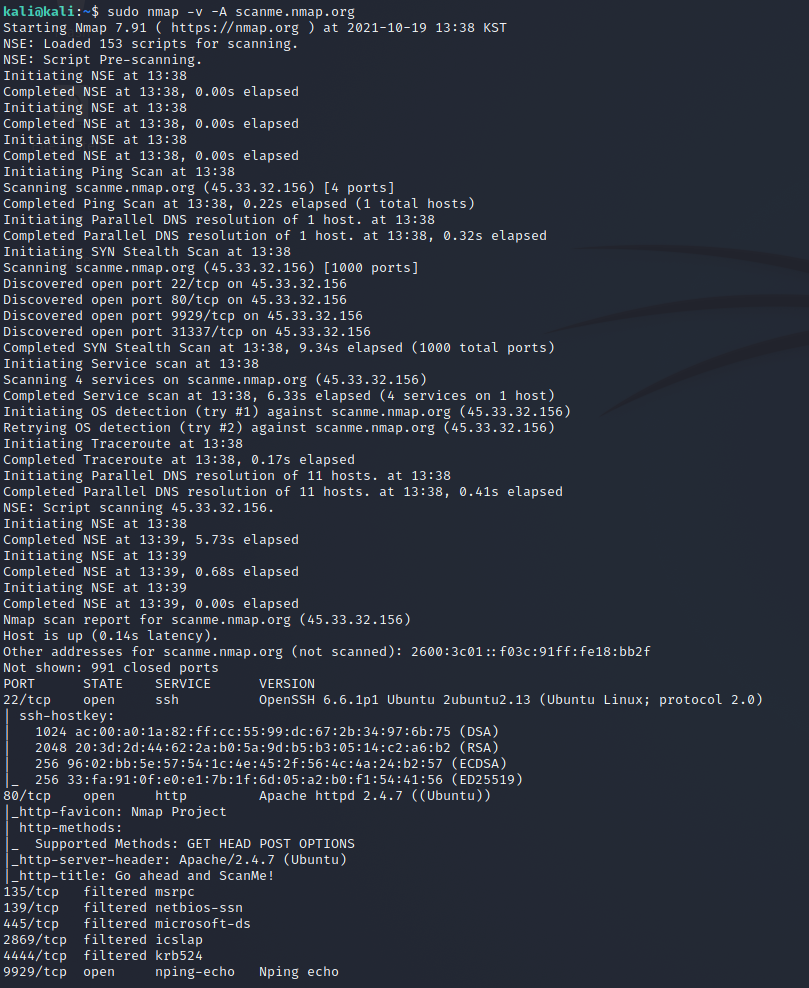1. nmap -v -A scanme.nmap.org 실행