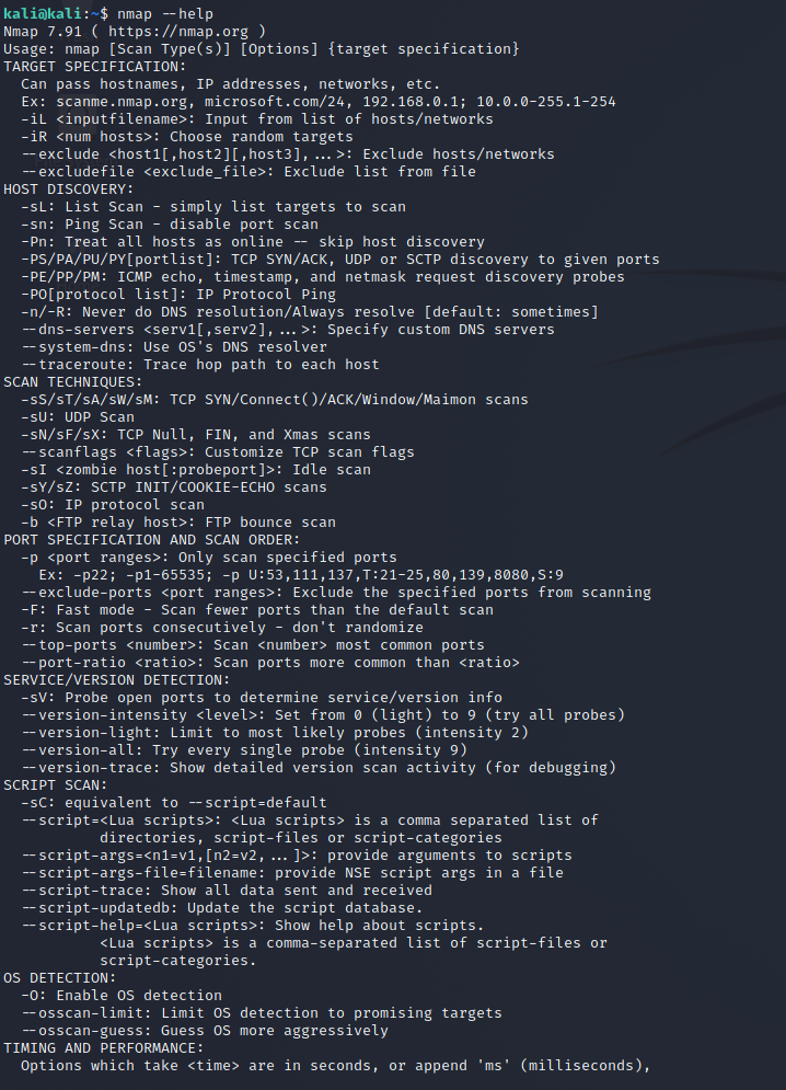 SEE THE MAN PAGE (https://nmap.org/book/man.html) FOR MORE OPTIONS AND EXAMPLES
