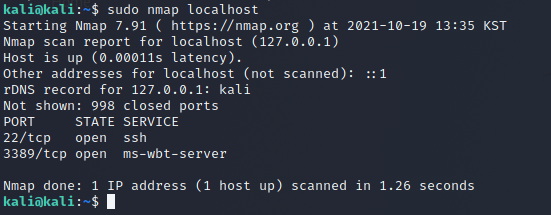 사용법 : nmap [Scan Type(s)] [Options] {target specification} => nmap [스캔유형] [옵션] {목표명세(목표설정)}